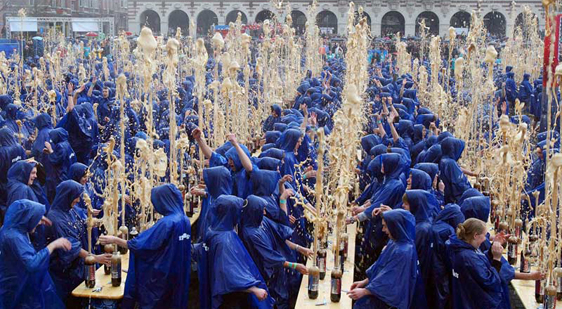 A world record for the biggest Coke-Mentos explosion belongs to 1,500 students of Leuven, Belgium. Students, each wearing a blue poncho, added Mentos mints to a bottle of Diet Coke for a simultaneous explosion. iaccm.com has more than 1500 daily visitors. If it would be possible to bring all of the iaccm.com visitors to one place for a meetup, it would be a good idea to get some Mentos and Coke and break this record.