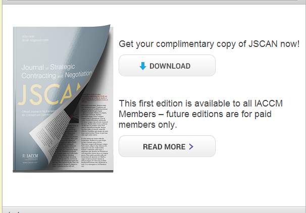 The first edition of JSCAN is available now, at no charge. Future editions will be free to IACCM members – yielding a large global circulation from inception.